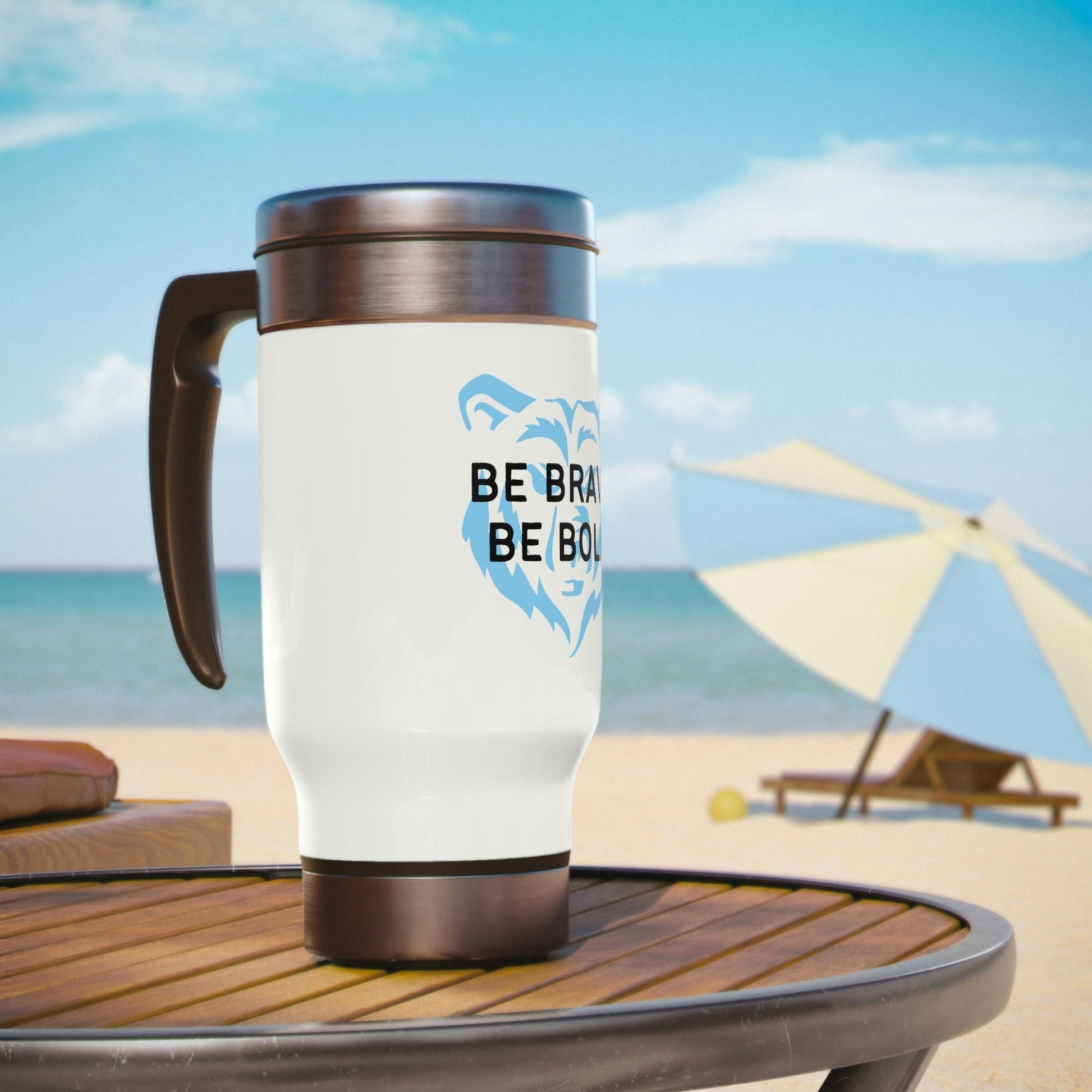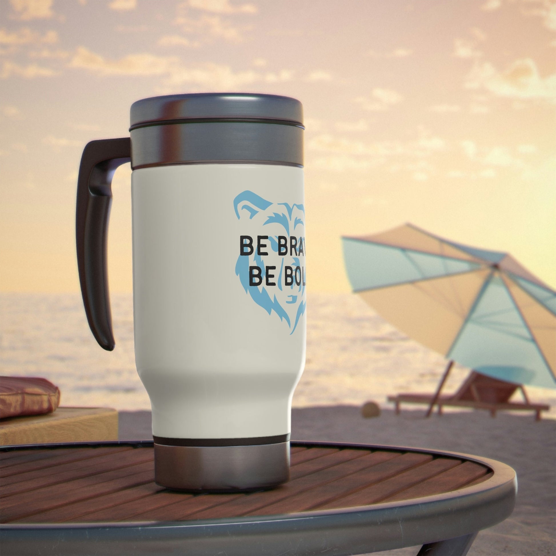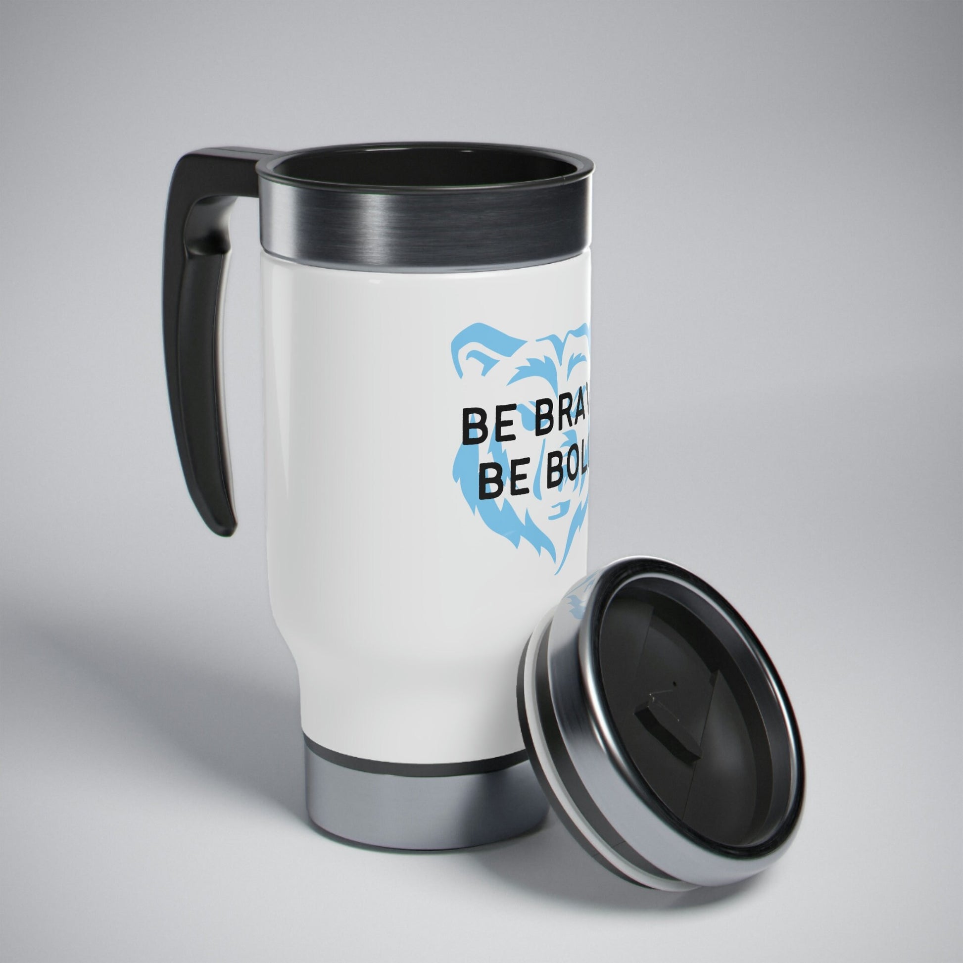 Be Brave Be Bold Bear Design Stainless Steel Travel Mug with Handle, 14oz