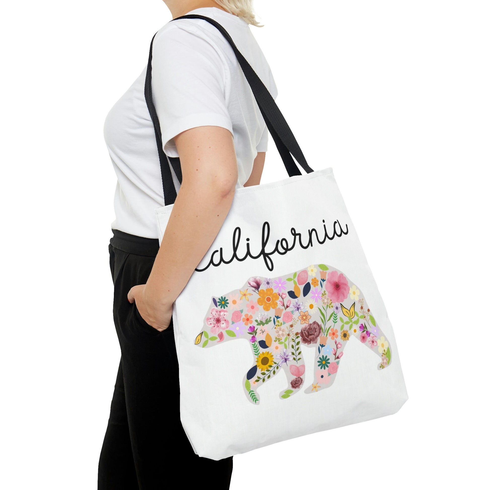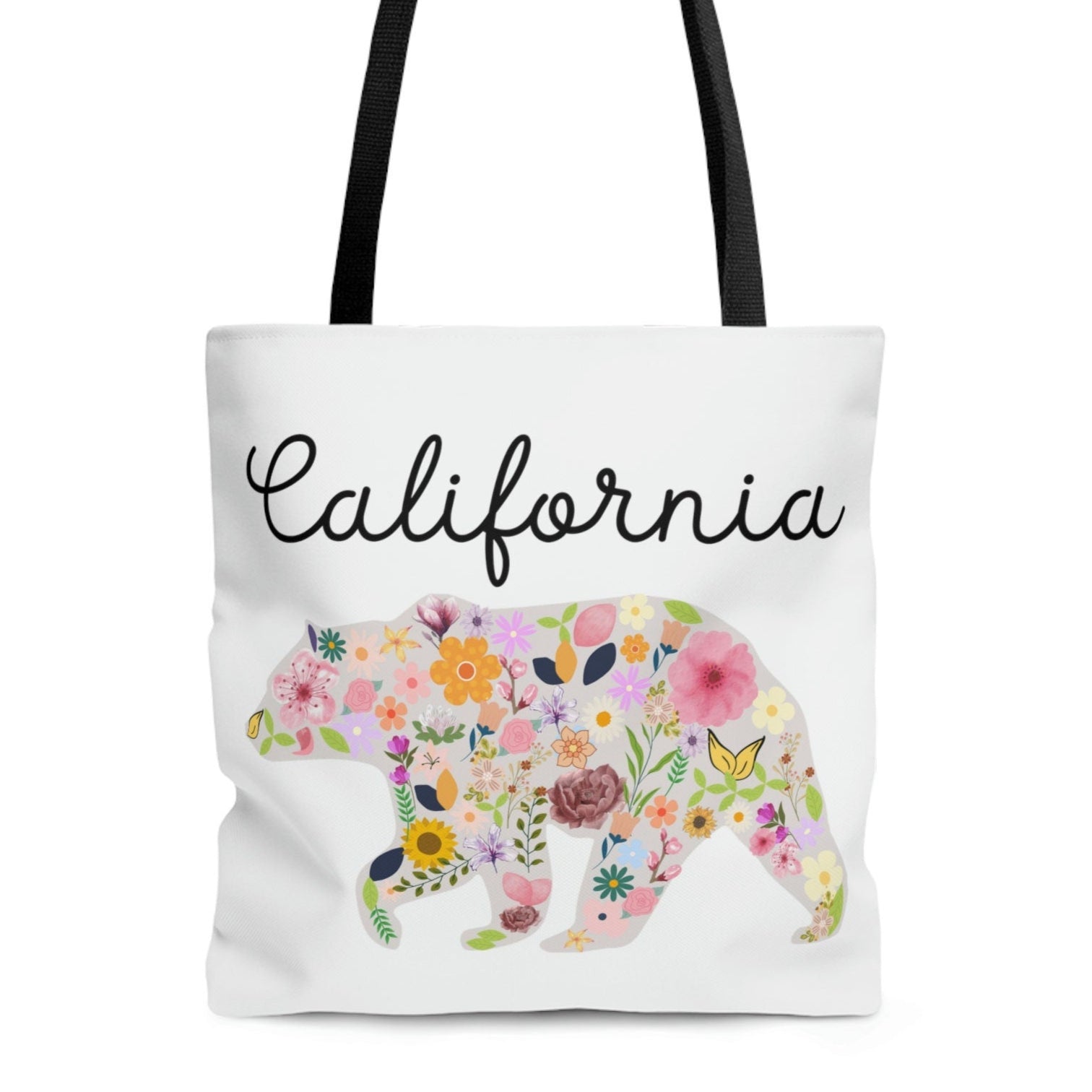 California Bear Floral Design Flowers Cali AOP Tote Bag