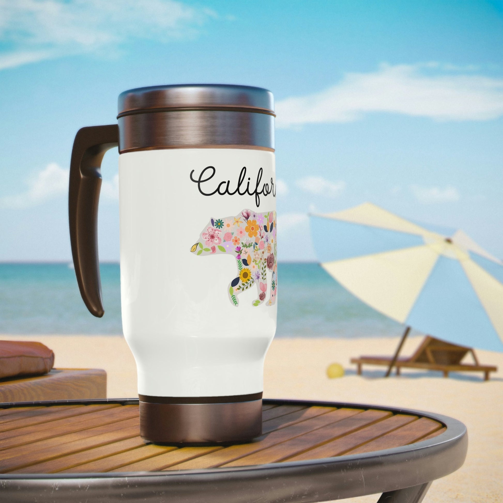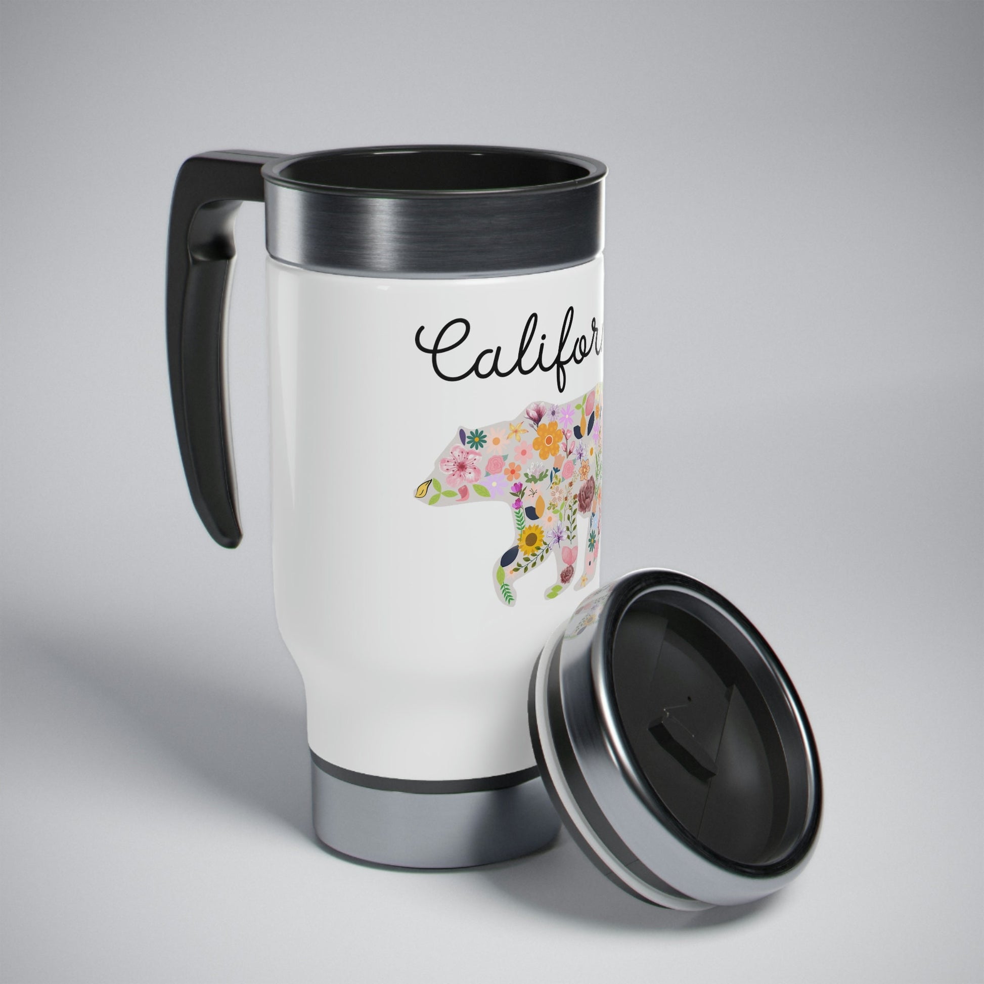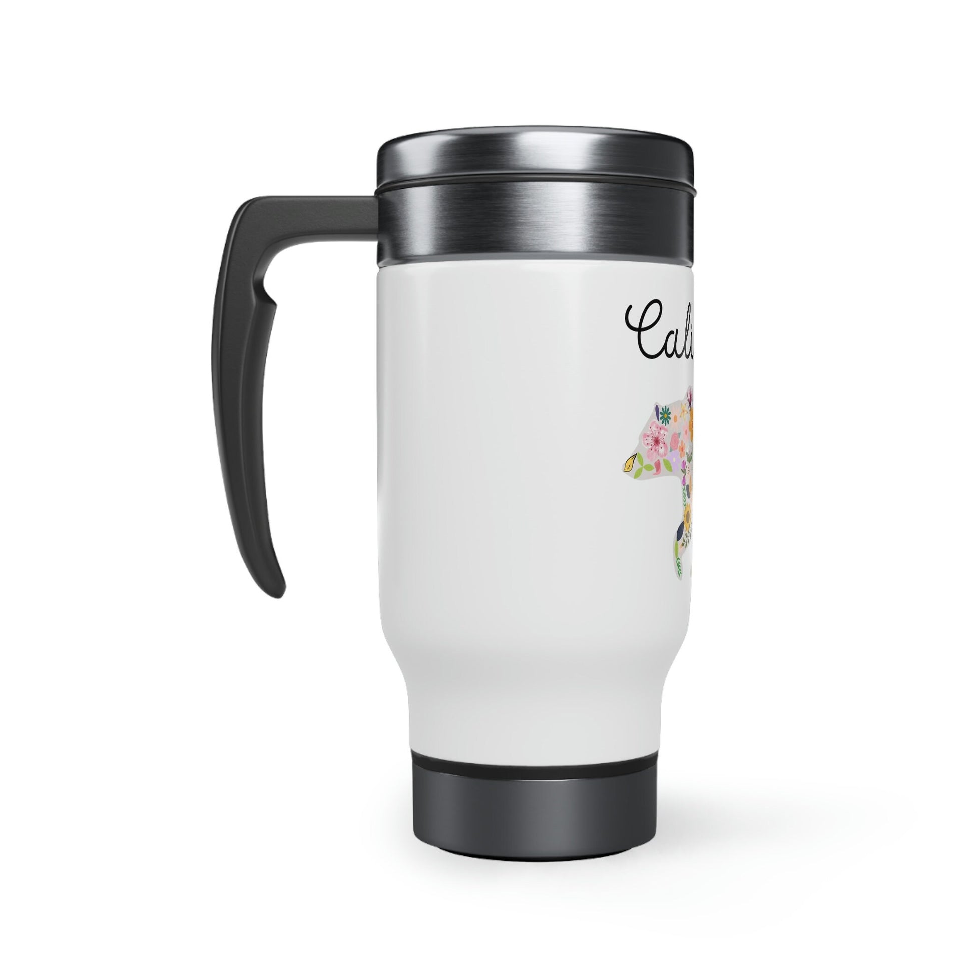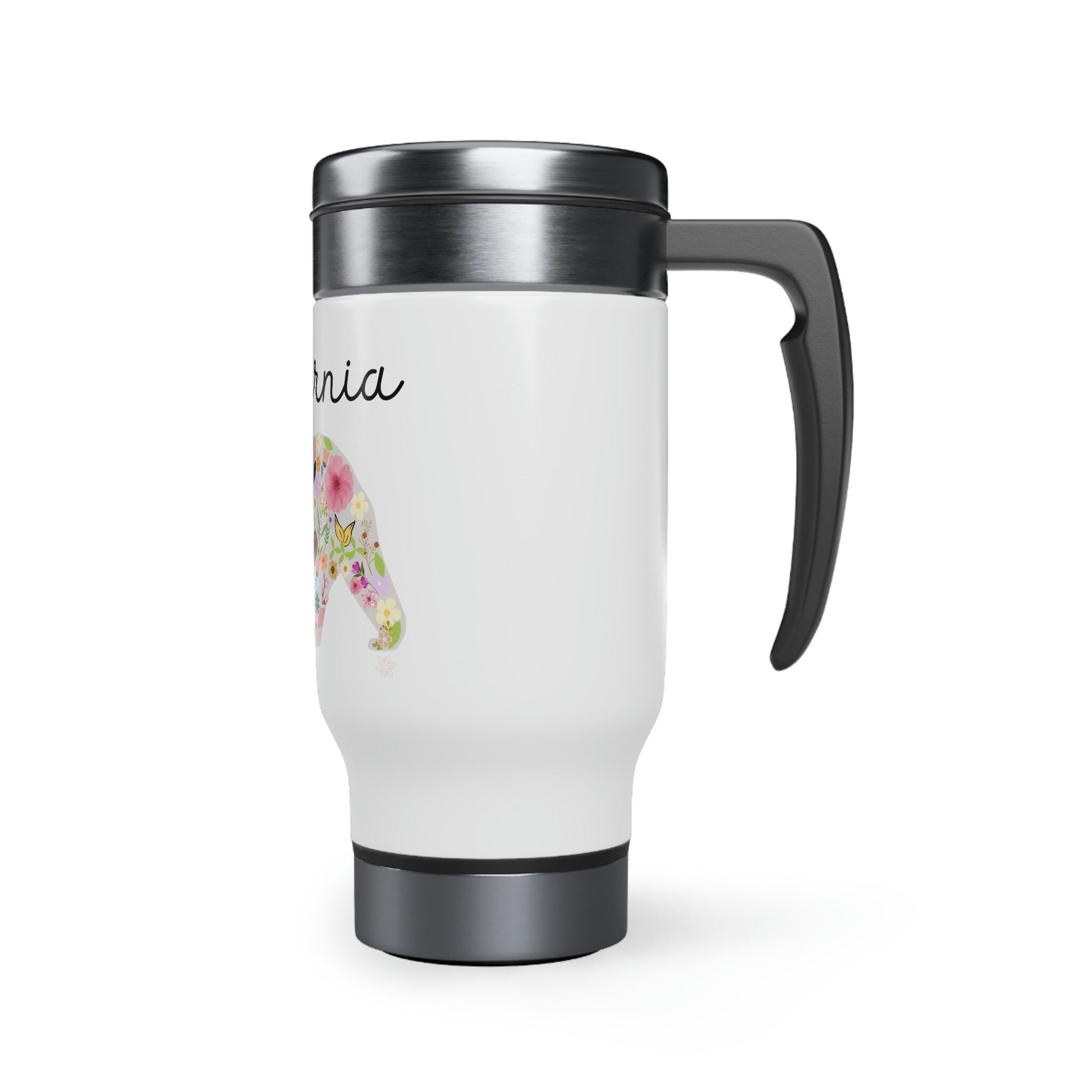 California Bear Floral Flowers Stainless Steel Travel Mug with Handle, 14oz