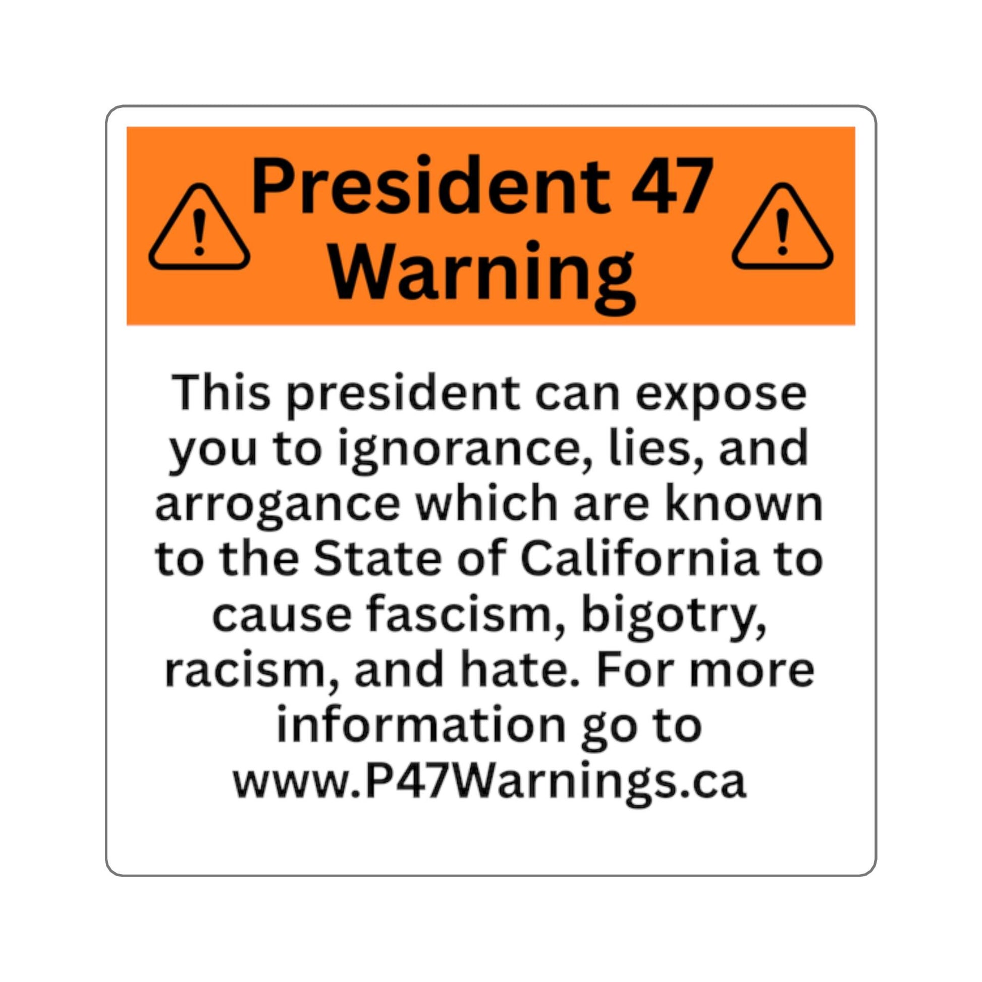 California Prop 65 Parody Sticker | President 47 Warning Sticker | Anti-Trump