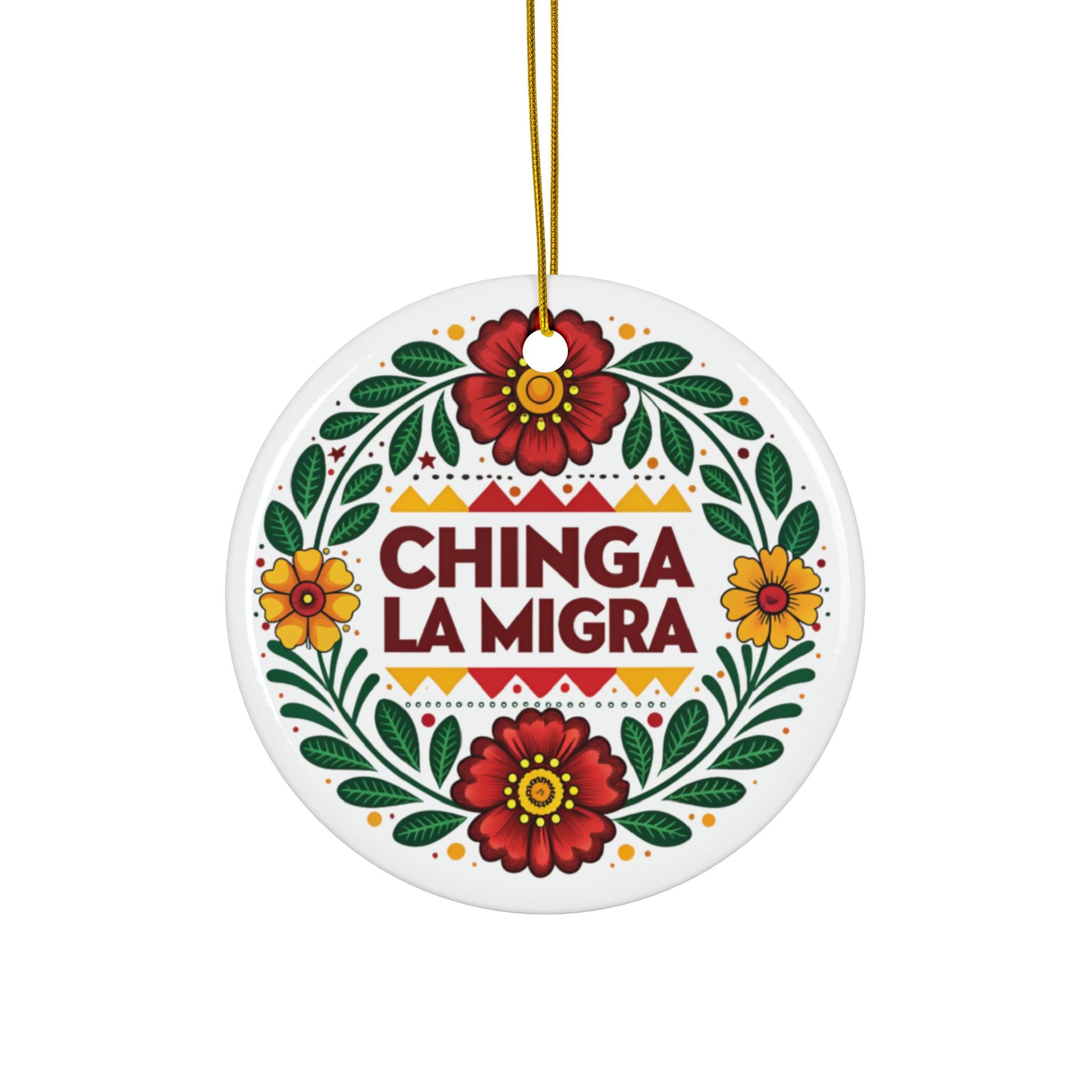 Chinga La Migra “F-ck I.C.E.” — Anti-ICE Statement Ceramic Ornament / Holiday Décor