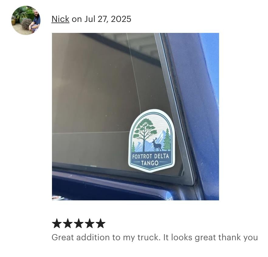 Dozens of happy customers have bought these Foxtrot Delta Tango, US Forestry theme stickers. Add them to your car, water bottle, or laptop. The nature-themed design of the decals lets you share express yourself in a subtle way. If you know, you know! They're bright and vibrant and long-lasting.