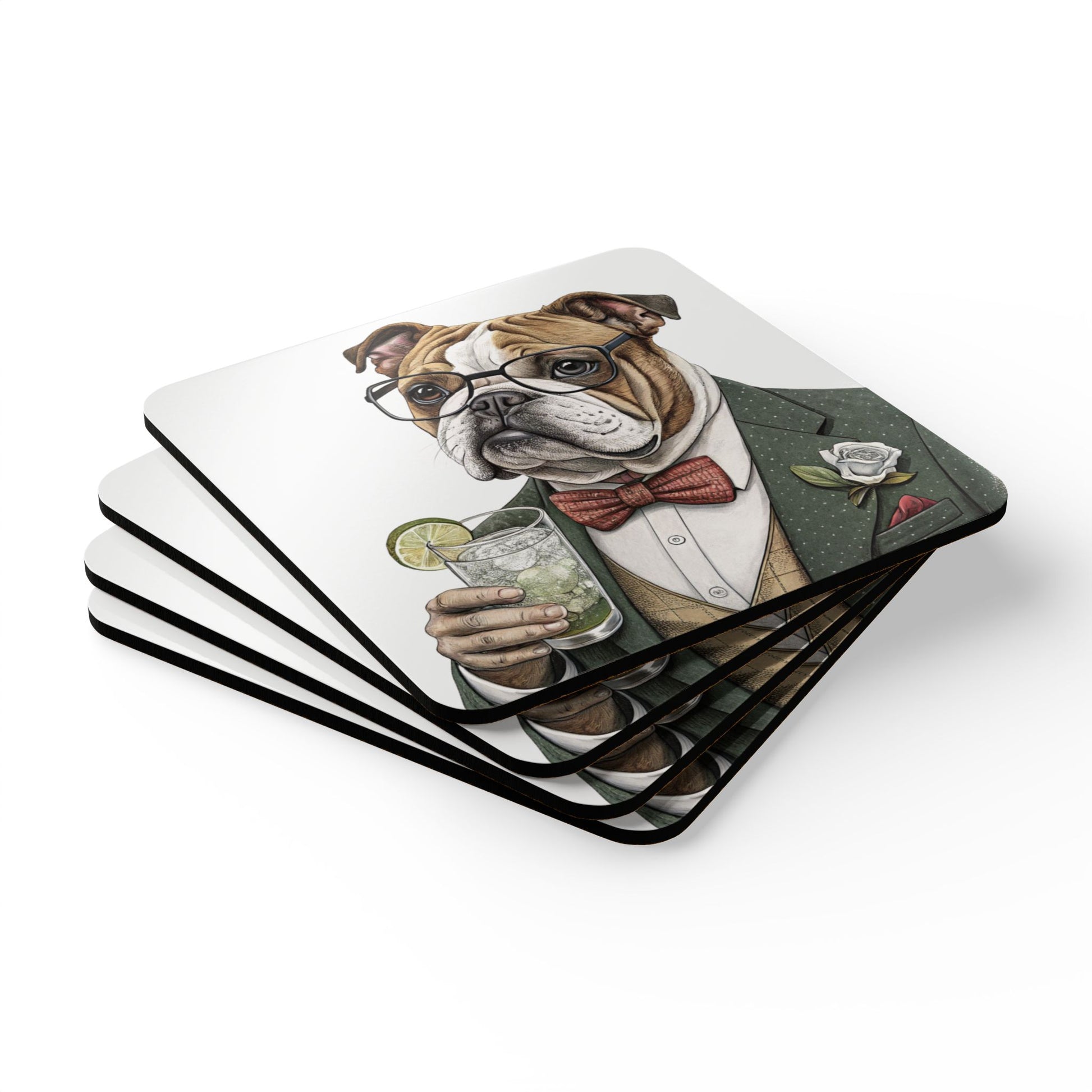 Hair of the Dog "Bulldog" Stylish Dog-Themed Cork Coaster Set, Bulldog Coasters, Home Bar Decor, Dog Lover Gift, Unique Housewarming Present