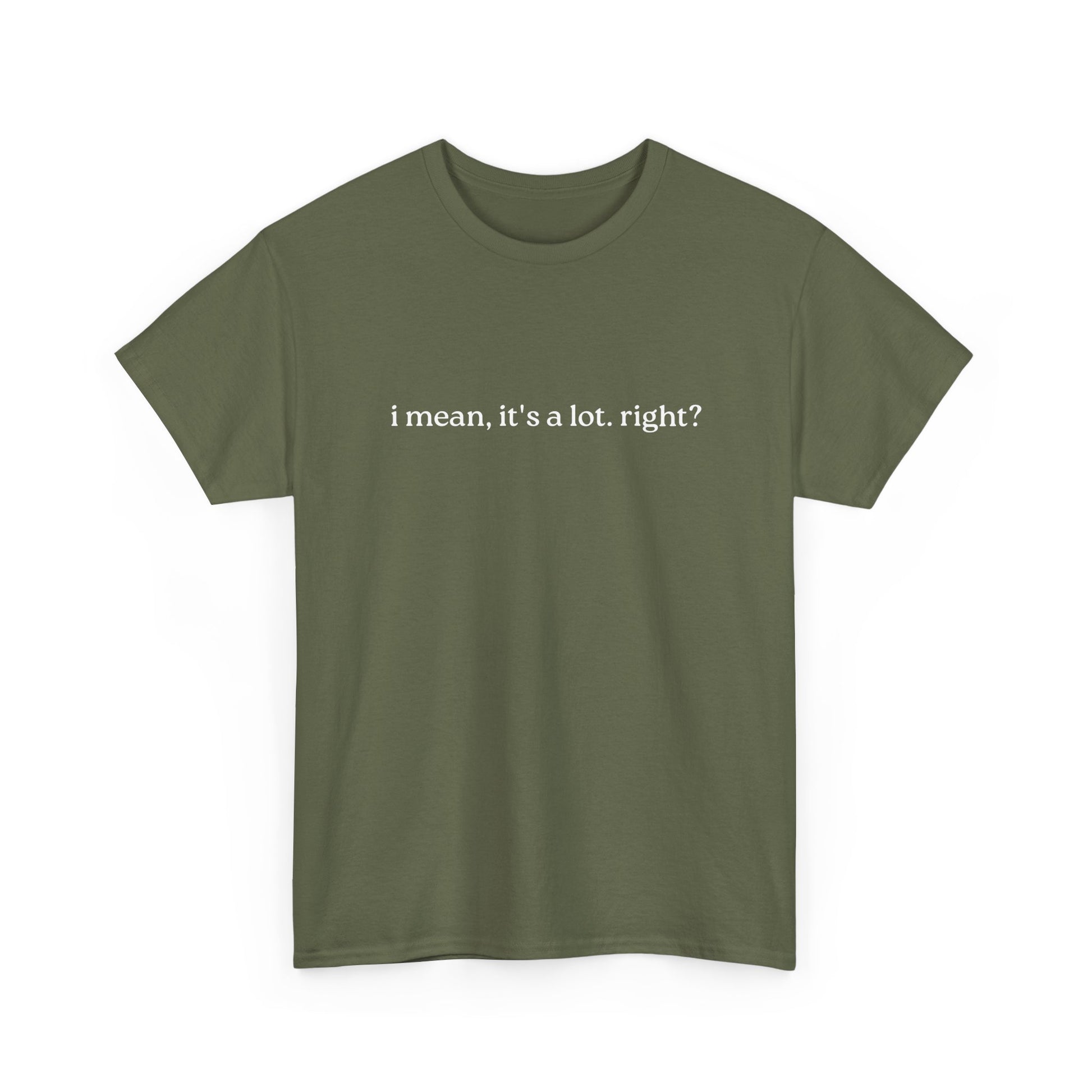 I Mean, It's a Lot. Right?| Casual Statement T-Shirt with Quote, Unisex Cotton Tee for Everyday Wear, Funny Gift for Friends